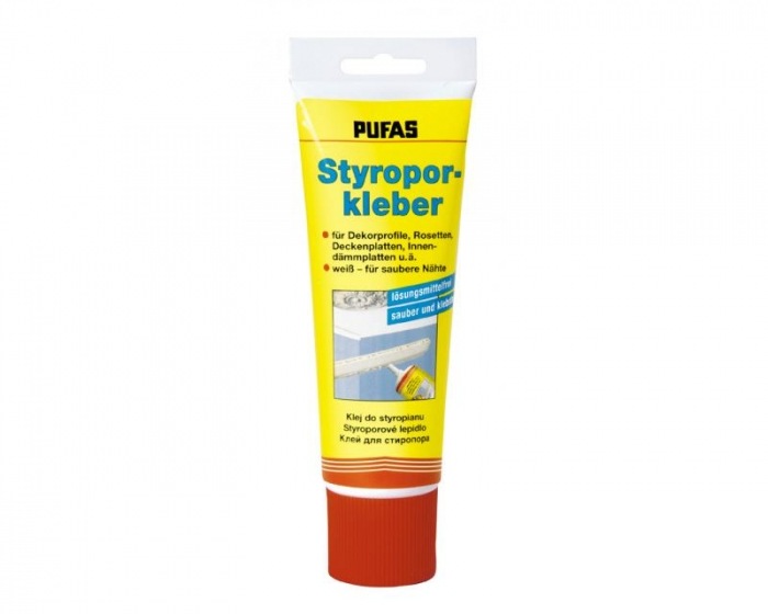 Adeziv alb dispersiv pentru utilizare imediată pentru lipirea baghetelor decorative, rozetelor, plăcilor decorative și izolatoare din polistiren și poliuretan.
