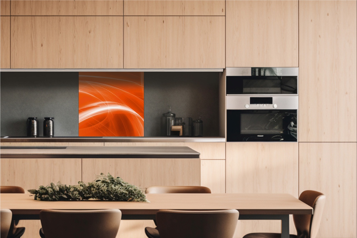 Placă decorativă dibond pentru bucătărie Abstract portocaliu - 60 x 60 cm