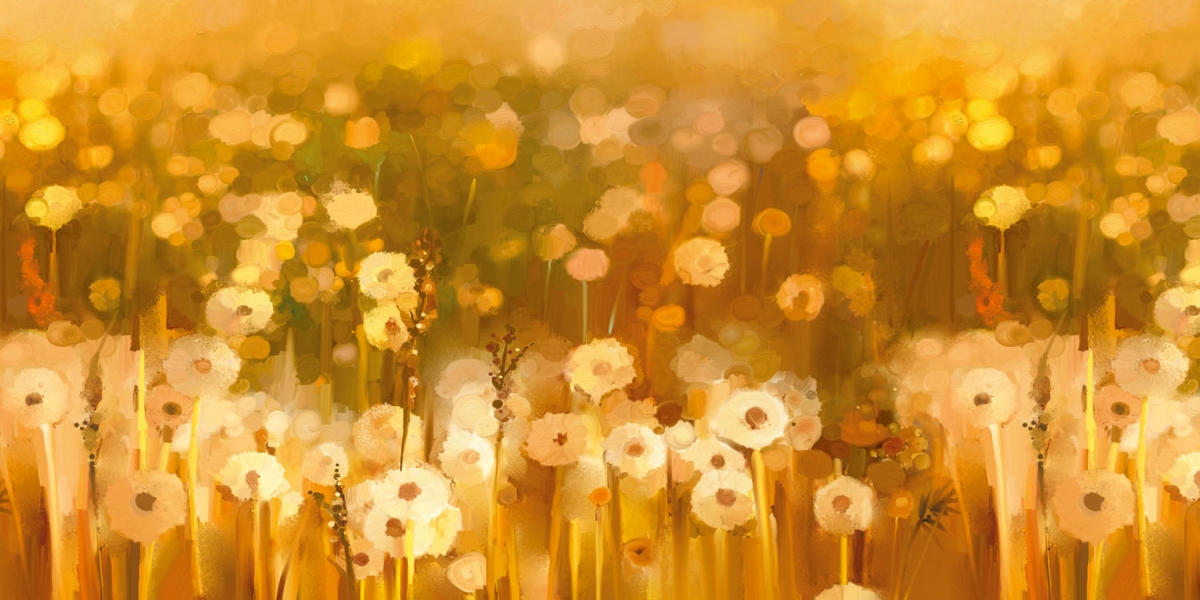 Placă decorativă dibond pentru bucătărie Câmp de păpădie vintage - 80 x 40 cm