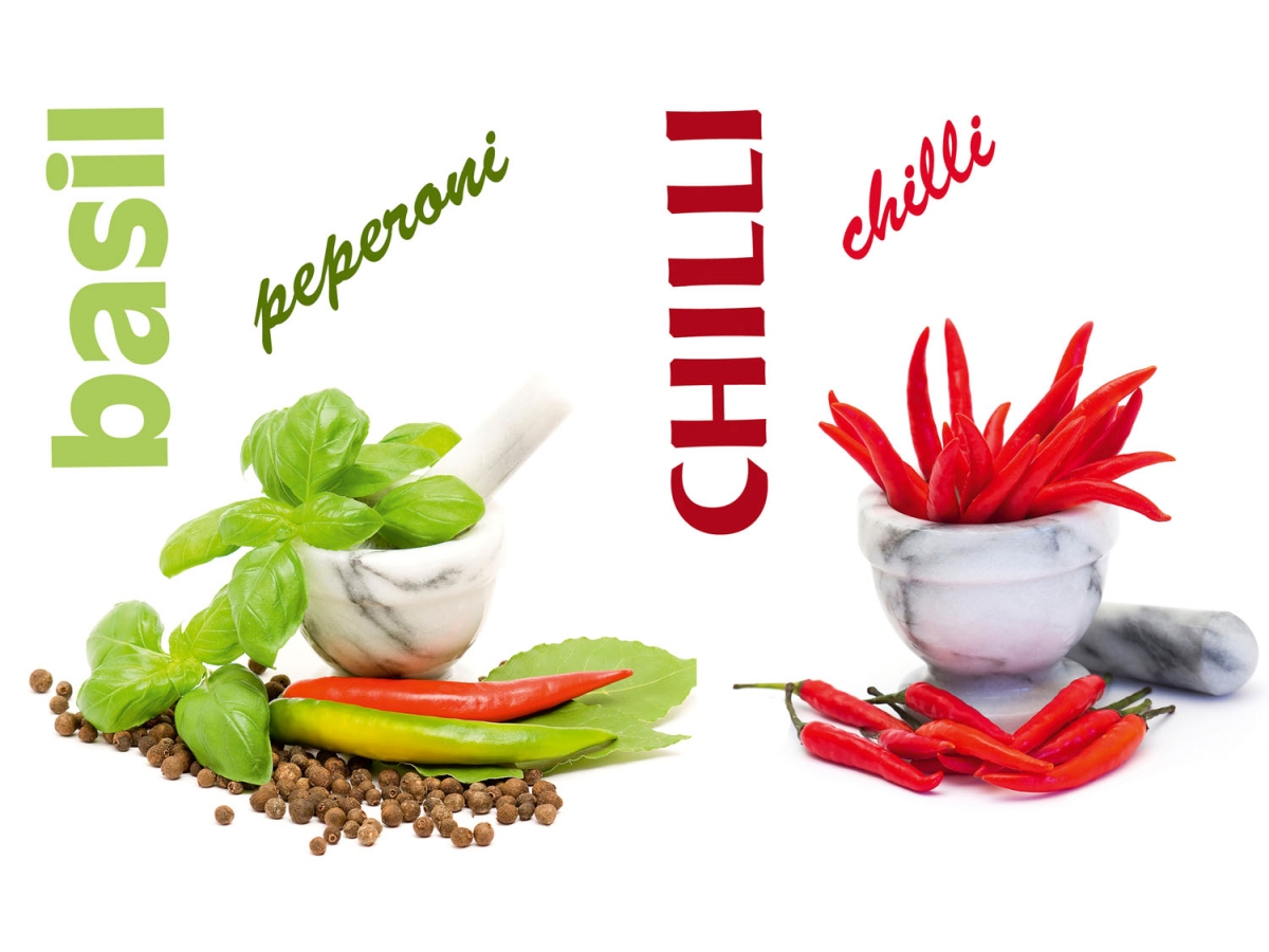 Placă decorativă dibond pentru bucătărie Condimente - 80 x 60 cm