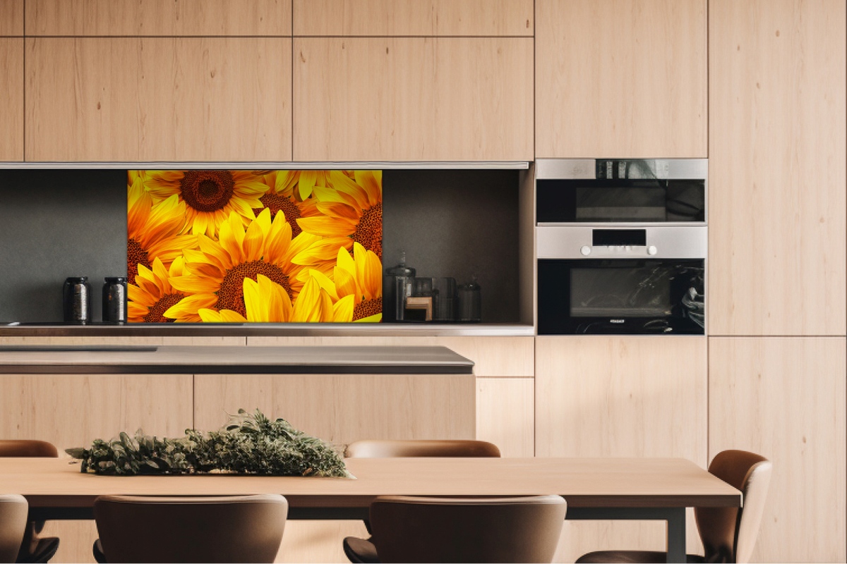 Placă decorativă dibond pentru bucătărie Floarea-soarelui - 100 x 60 cm