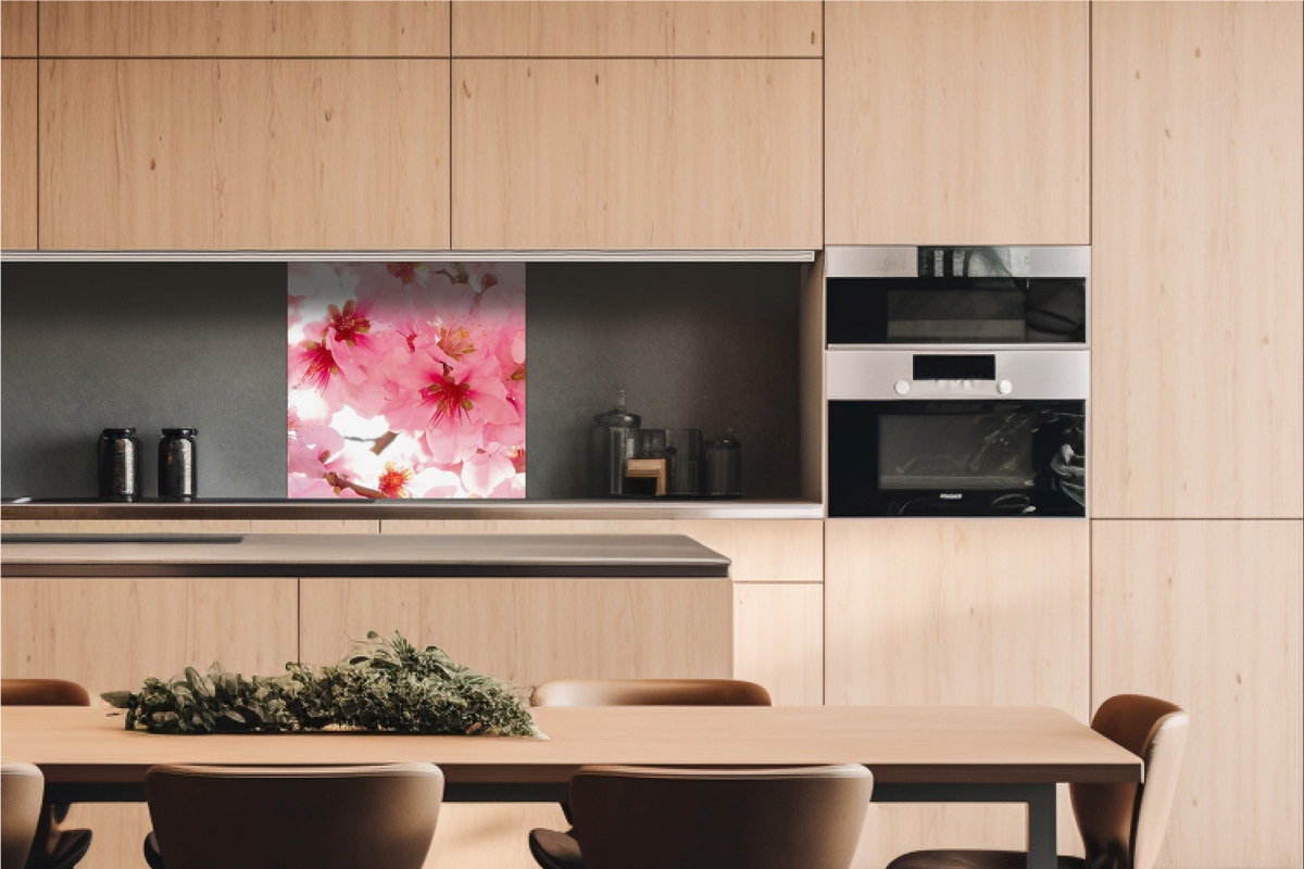 Placă decorativă dibond pentru bucătărie Flori de măr - 60 x 60 cm