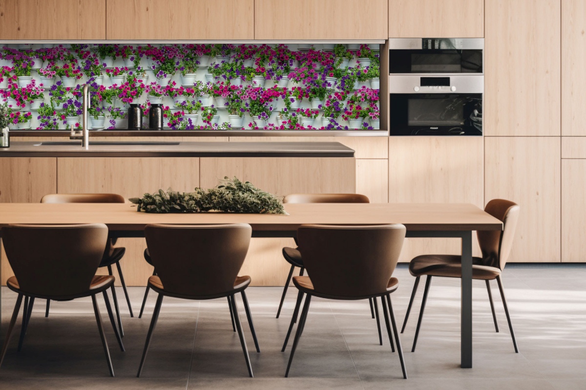 Placă decorativă dibond pentru bucătărie Flori în cutii - 260 x 60 cm