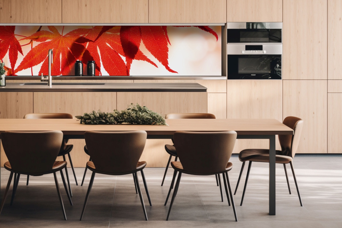 Placă decorativă dibond pentru bucătărie Frunze roșii - 260 x 60 cm