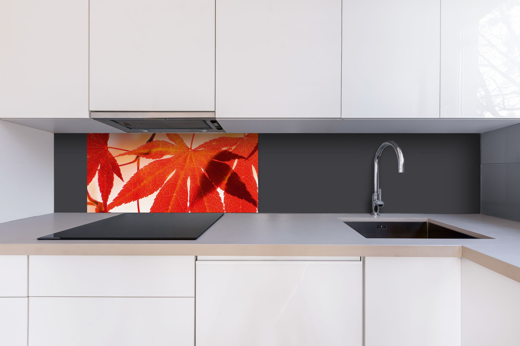Placă decorativă dibond pentru bucătărie Frunze roșii - 80 x 40 cm