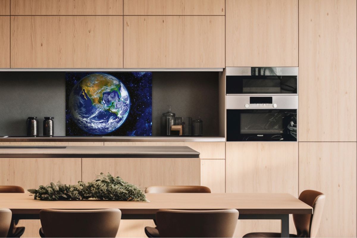 Placă decorativă dibond pentru bucătărie Glob - 80 x 60 cm