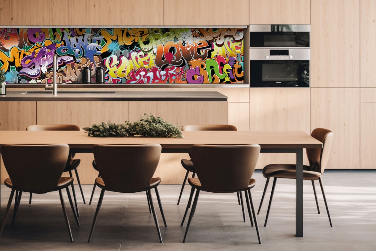Placă decorativă dibond pentru bucătărie Graffiti - 260 x 60 cm