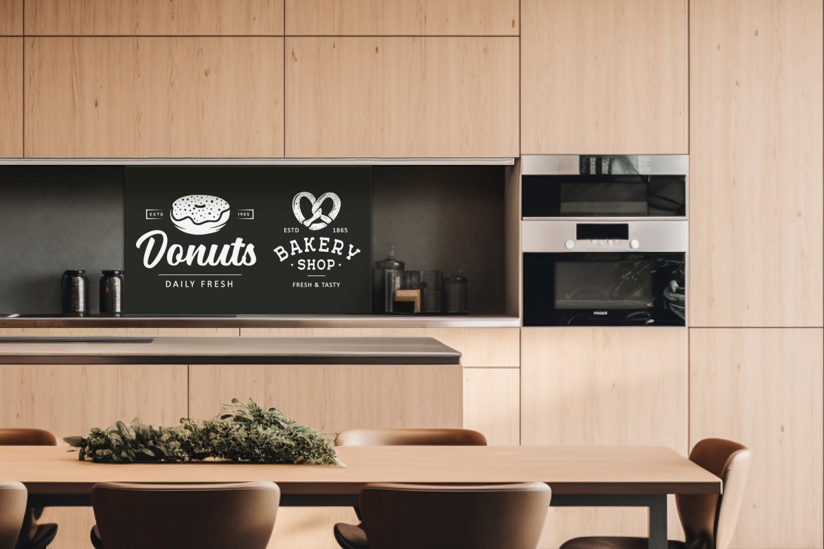 Placă decorativă dibond pentru bucătărie Insigne de brutărie - 100 x 60 cm