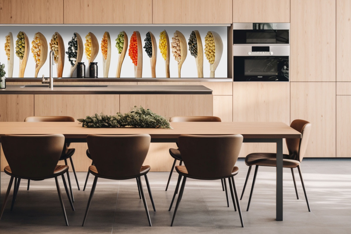 Placă decorativă dibond pentru bucătărie Linguri de lemn - 260 x 60 cm
