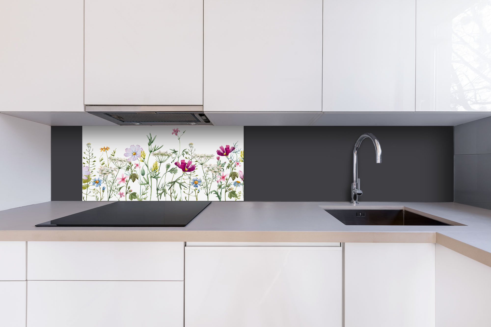 Placă decorativă dibond pentru bucătărie Model floral - 80 x 40 cm