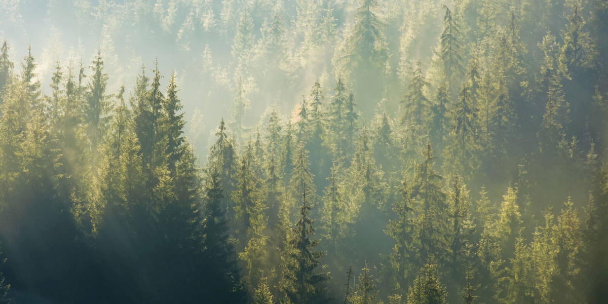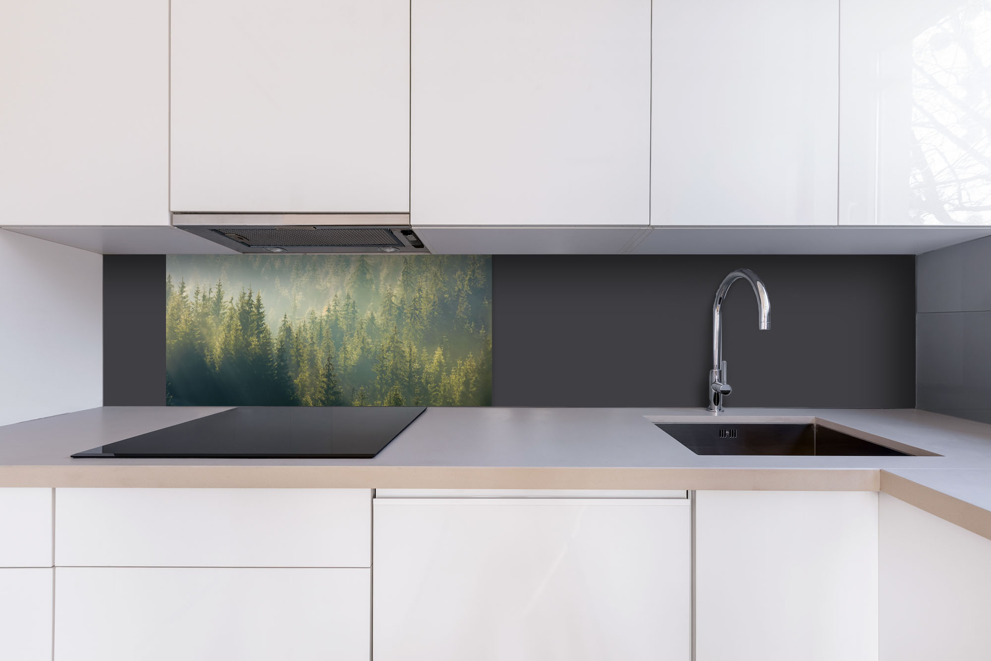 Placă decorativă dibond pentru bucătărie Pădure încețoșată - 80 x 40 cm