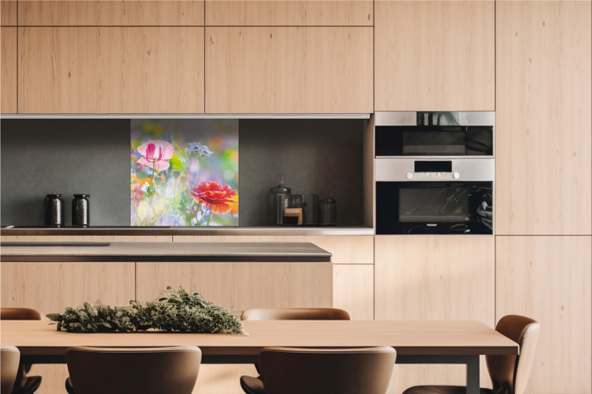 Placă decorativă dibond pentru bucătărie Pajiște colorată de vară - 60 x 60 cm
