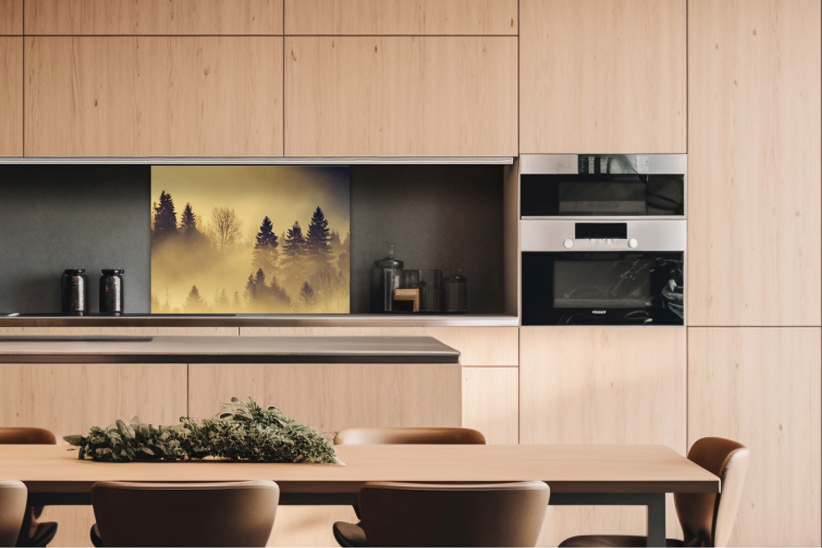 Placă decorativă dibond pentru bucătărie Peisaj forestier - 80 x 60 cm