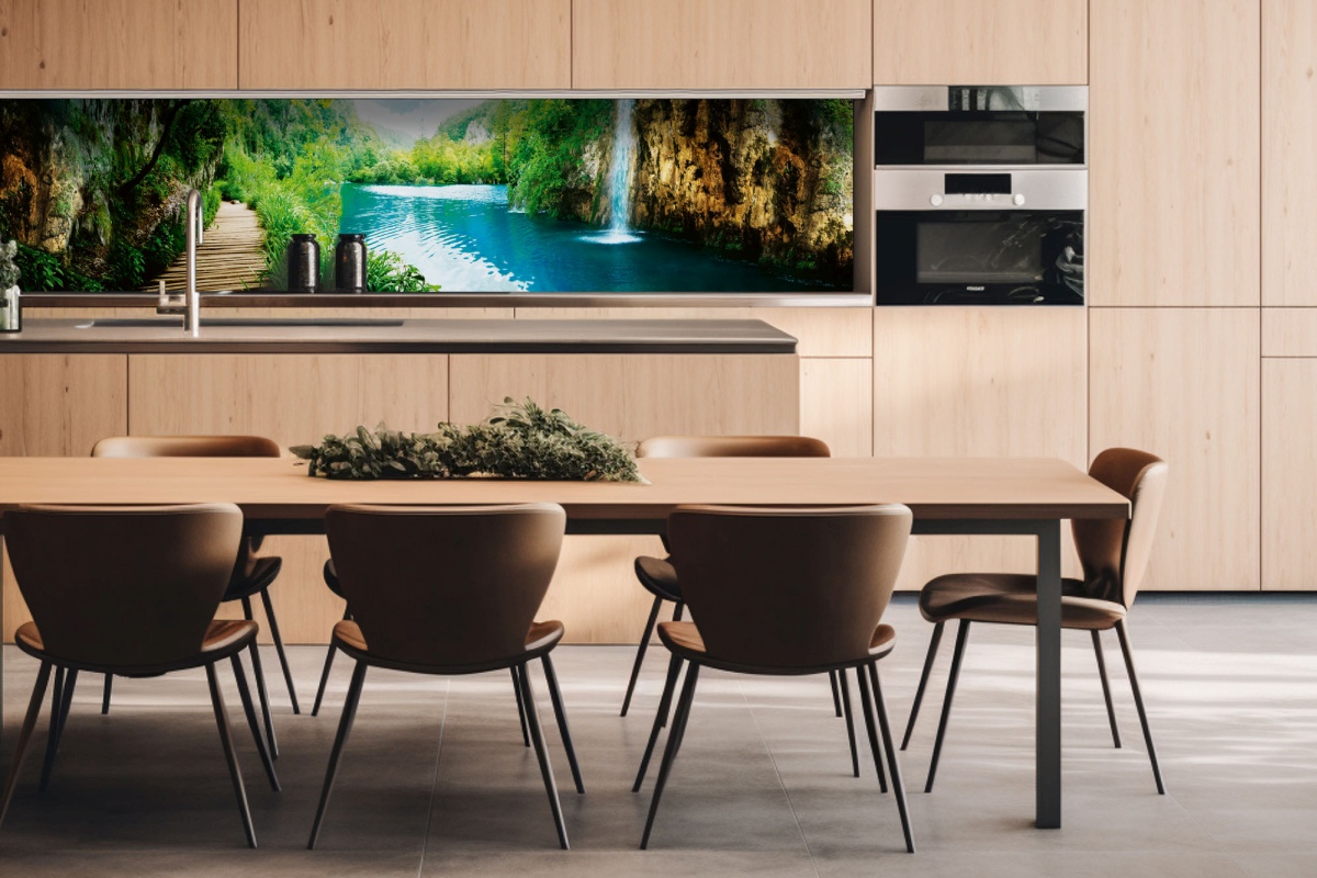 Cel mai nou trend în echipamentele de bucătărie sunt panourile imprimate pentru spațiul dintre blatul și mobilierul de bucătărie. Dibond, adică placa compozită din aluminiu, este o soluție potrivită pentru a înfrumuseța bucătăria dumneavoastră. În oferta noastră îl găsiți în mai multe dimensiuni, iar grosimea plăcii dibond este de 3 mm, varianta cea mai solicitată.