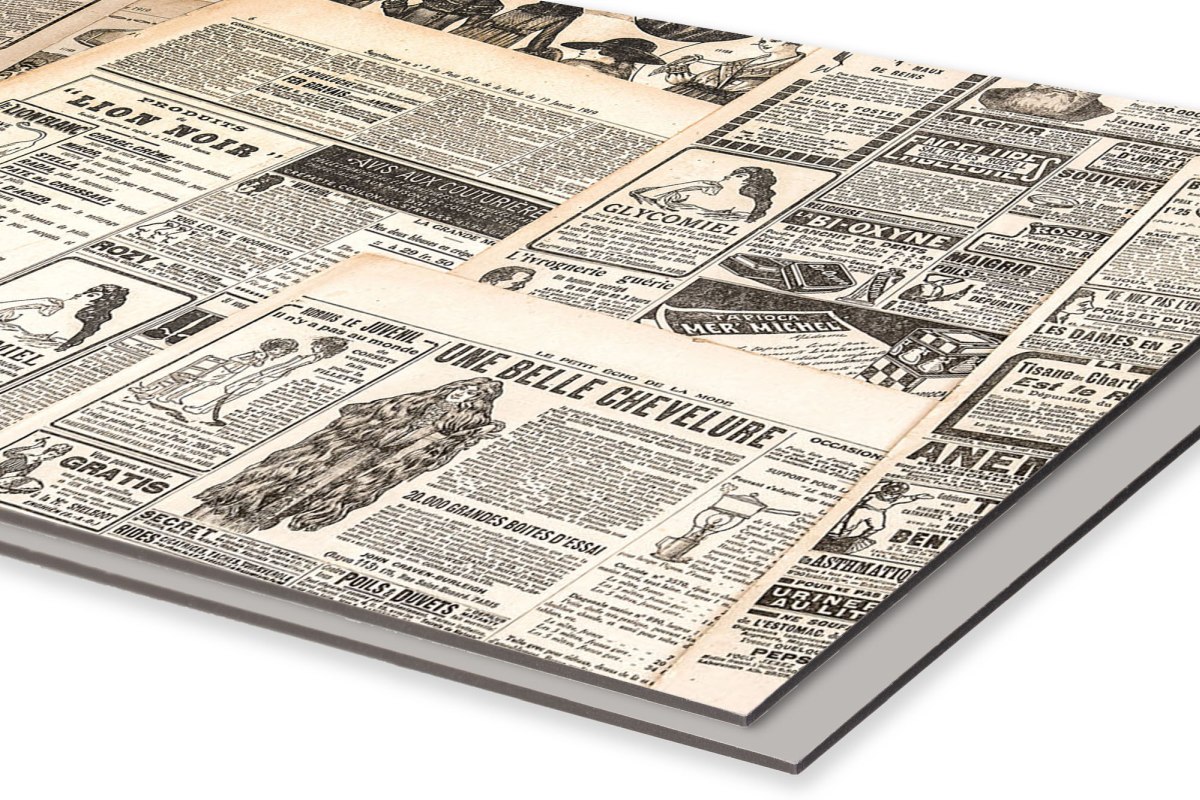 Placă decorativă dibond pentru bucătărie Resturi de ziare - 60 x 40 cm