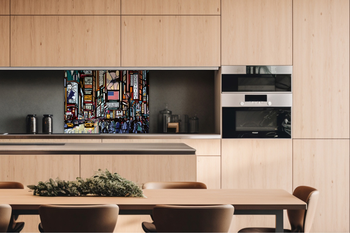 Placă decorativă dibond pentru bucătărie Times Piață - 80 x 60 cm
