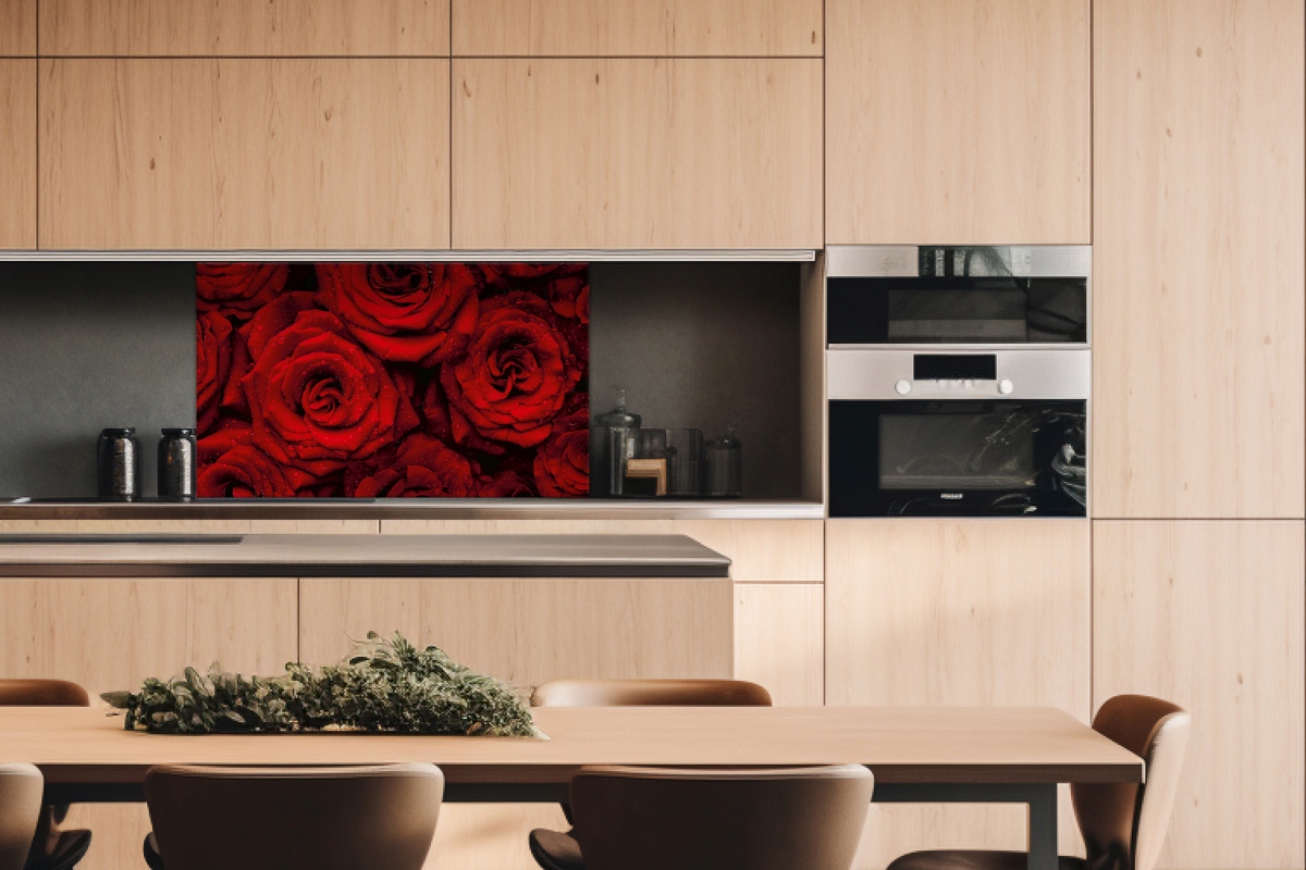 Placă decorativă dibond pentru bucătărie Trandafiri roșii - 100 x 60 cm