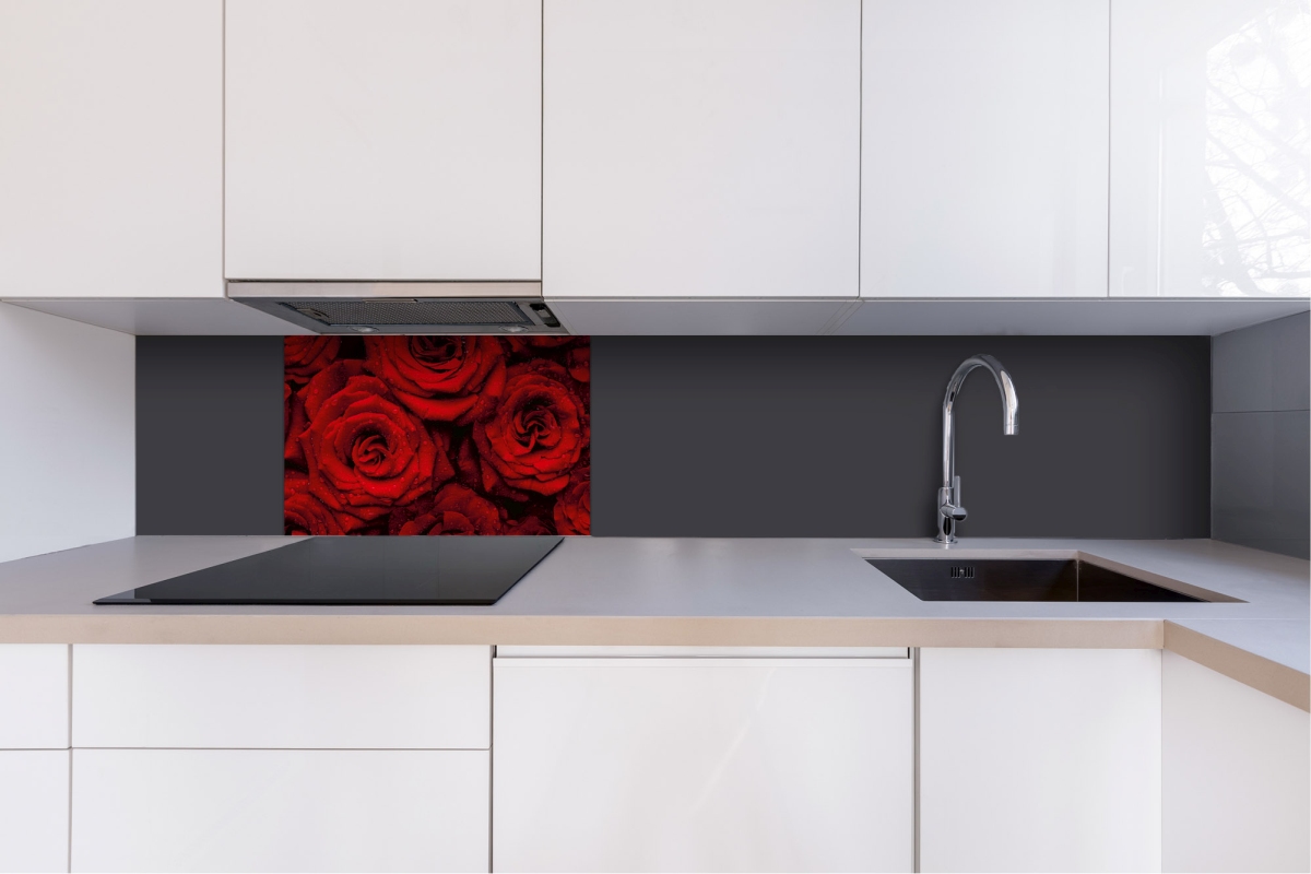 Placă decorativă dibond pentru bucătărie Trandafiri roșii - 60 x 40 cm
