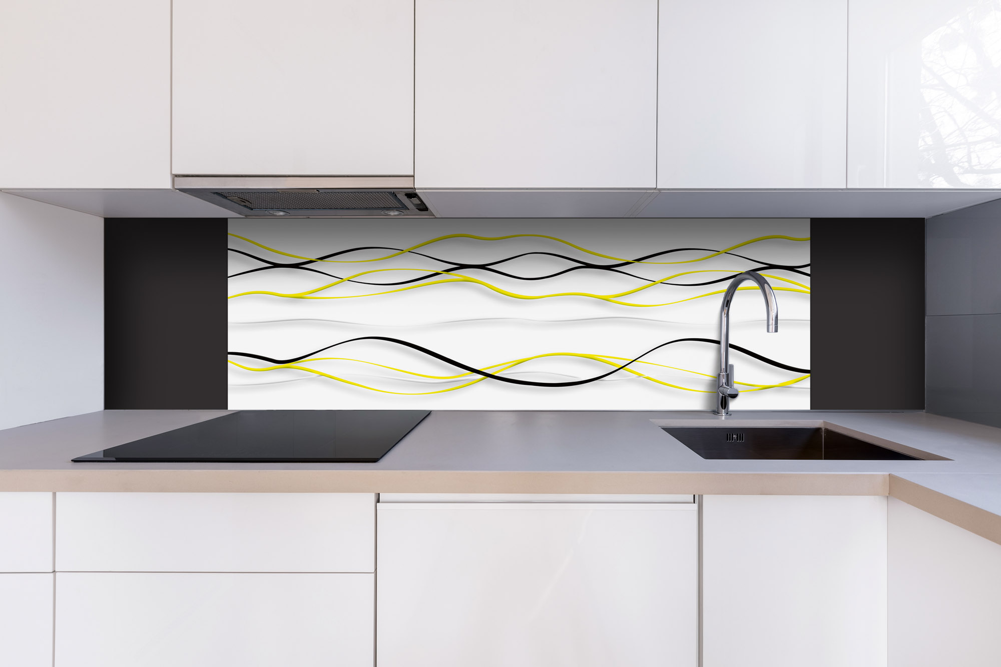 Placă decorativă dibond pentru bucătărie Valuri galbene - 180 x 60 cm