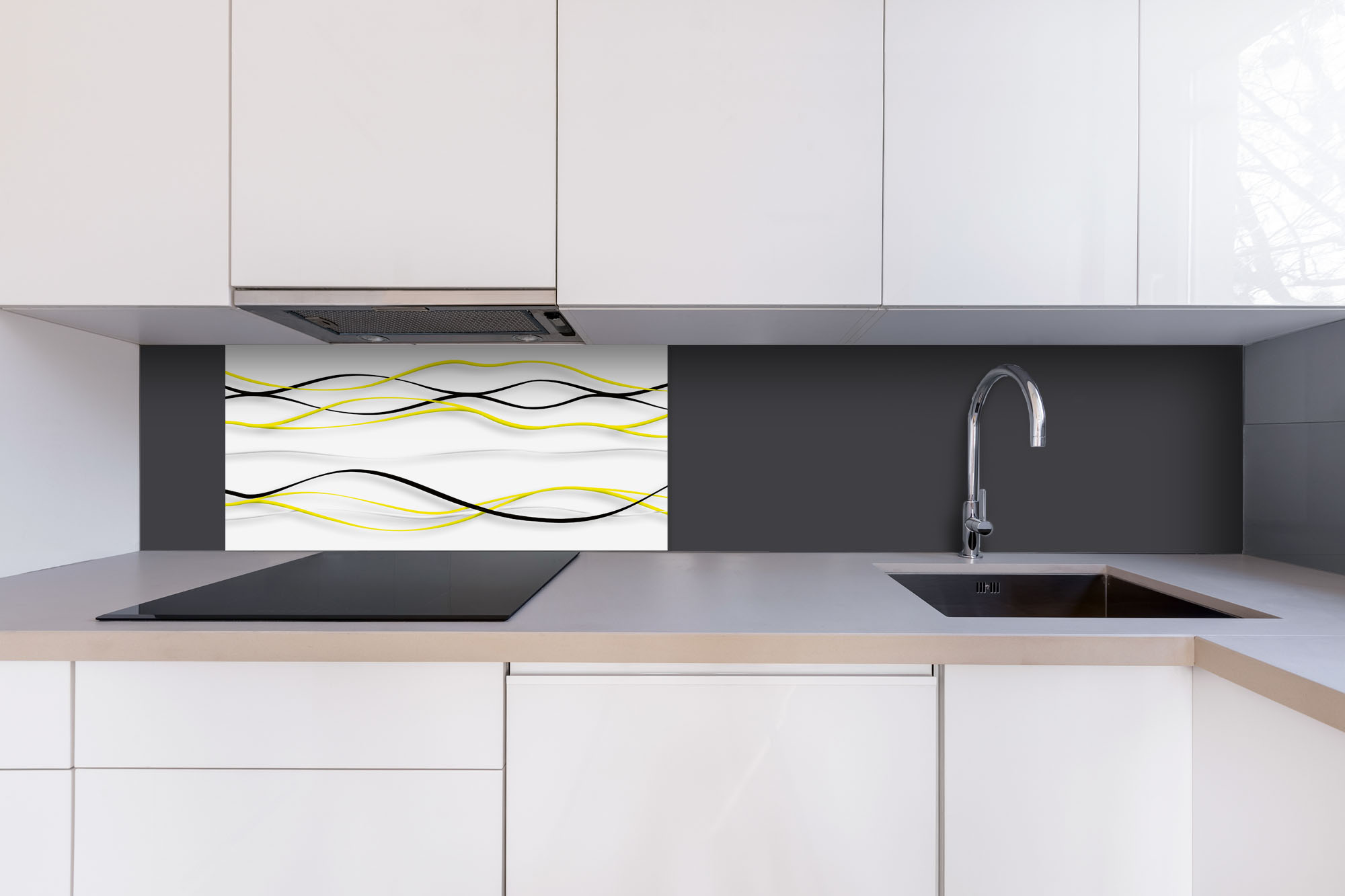 Placă decorativă dibond pentru bucătărie Valuri galbene - 80 x 40 cm