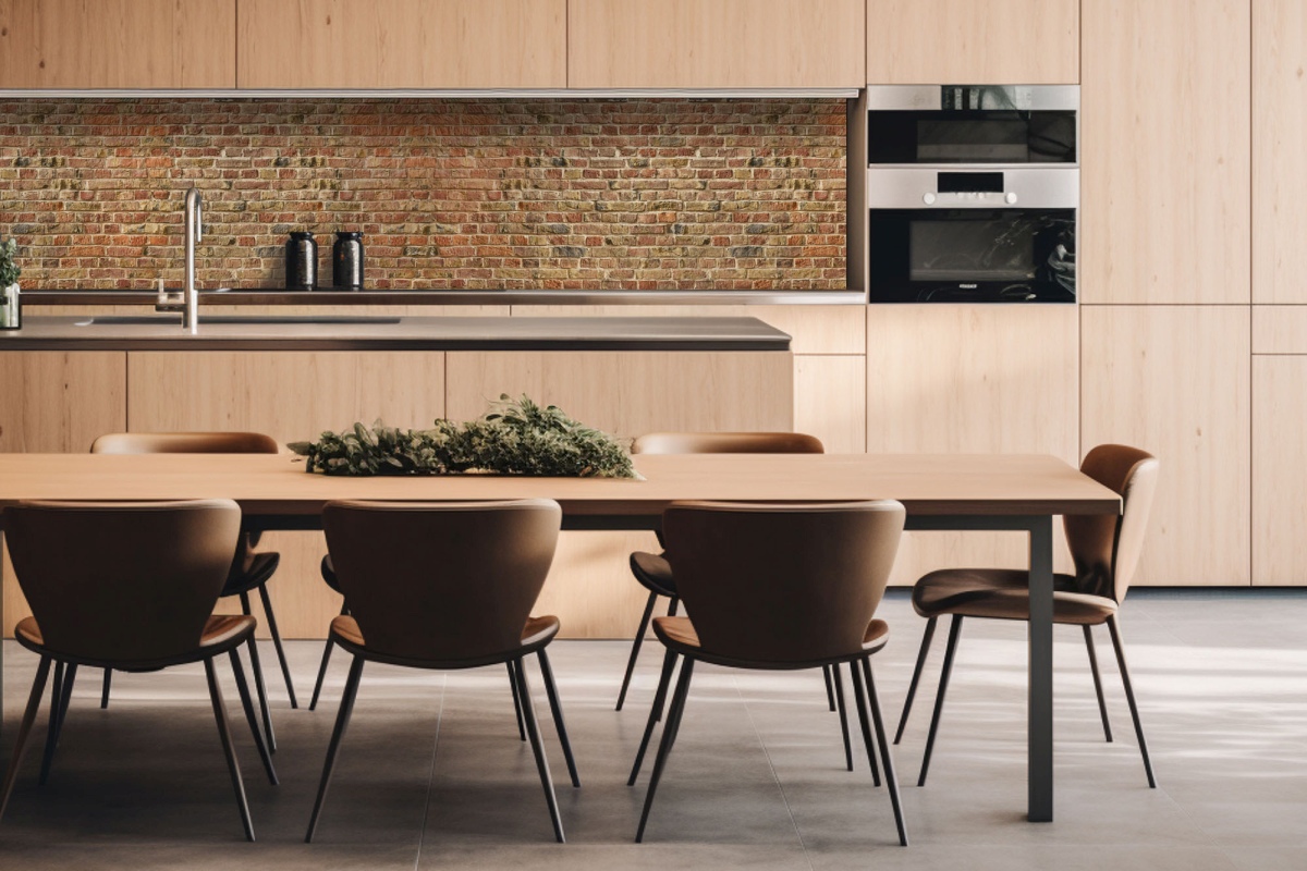 Placă decorativă dibond pentru bucătărie Zidet de cărămidă roșie - 260 x 60 cm