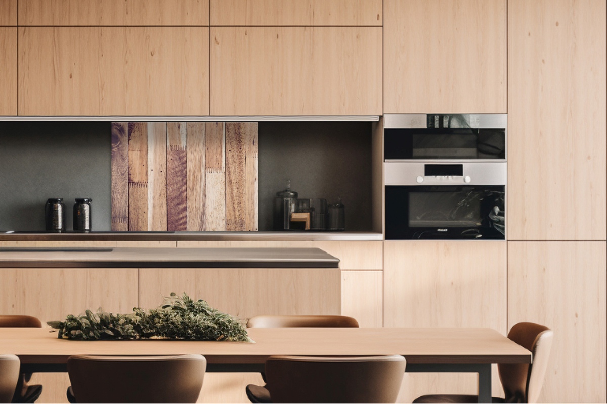 Placă decorativă dibond pentru bucătărie Zidet de lemn - 80 x 60 cm