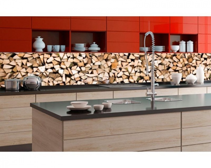 KI-350-031 Fototapet autoadeziv pentru bucătărie – Bușteni de lemn 350 x 60 cm