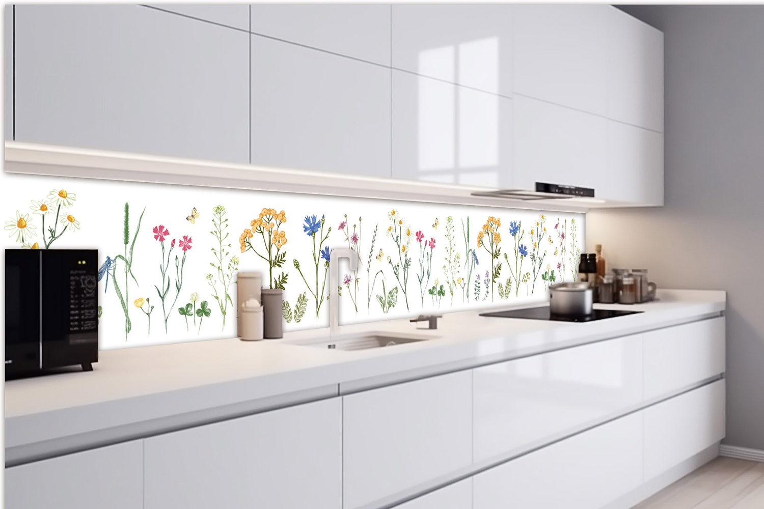 KI-420-219 Fototapet autoadeziv pentru bucătărie – Desen în herbar 420 x 60 cm