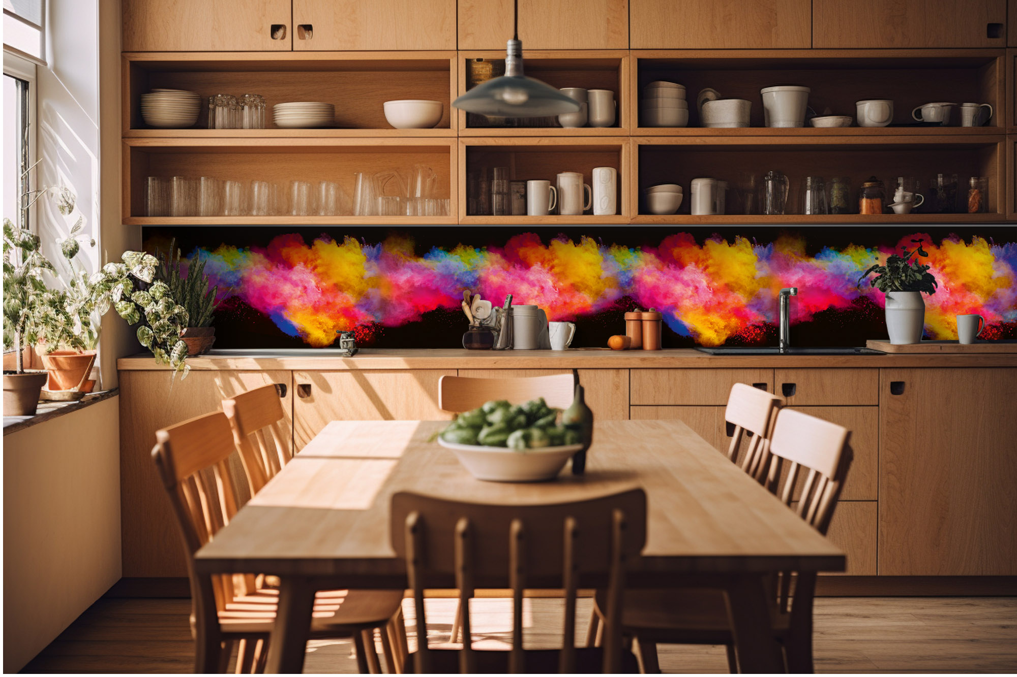 KI-420-288 Fototapet autoadeziv pentru bucătărie – Explozie de pulbere colorată 420 x 60 cm