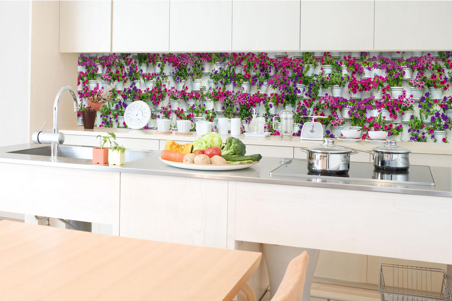 KI-350-176 Fototapet autoadeziv pentru bucătărie – Flori în cutii 350 x 60 cm