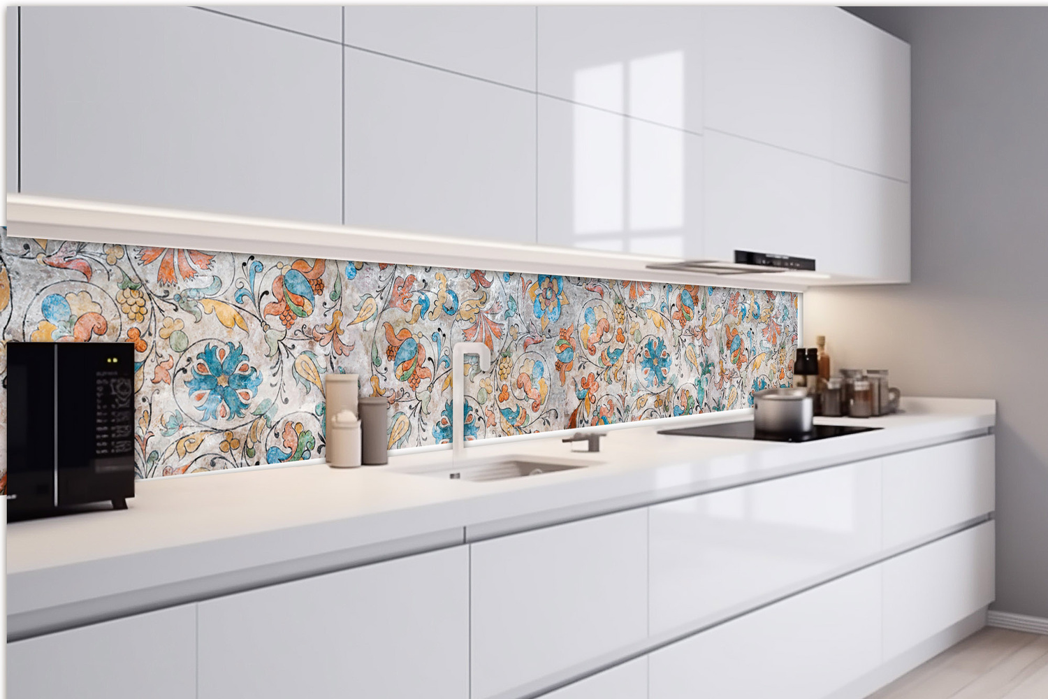 KI-350-212 Fototapet autoadeziv pentru bucătărie – Frescă italiană florală 350 x 60 cm