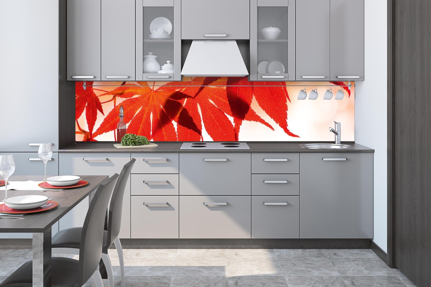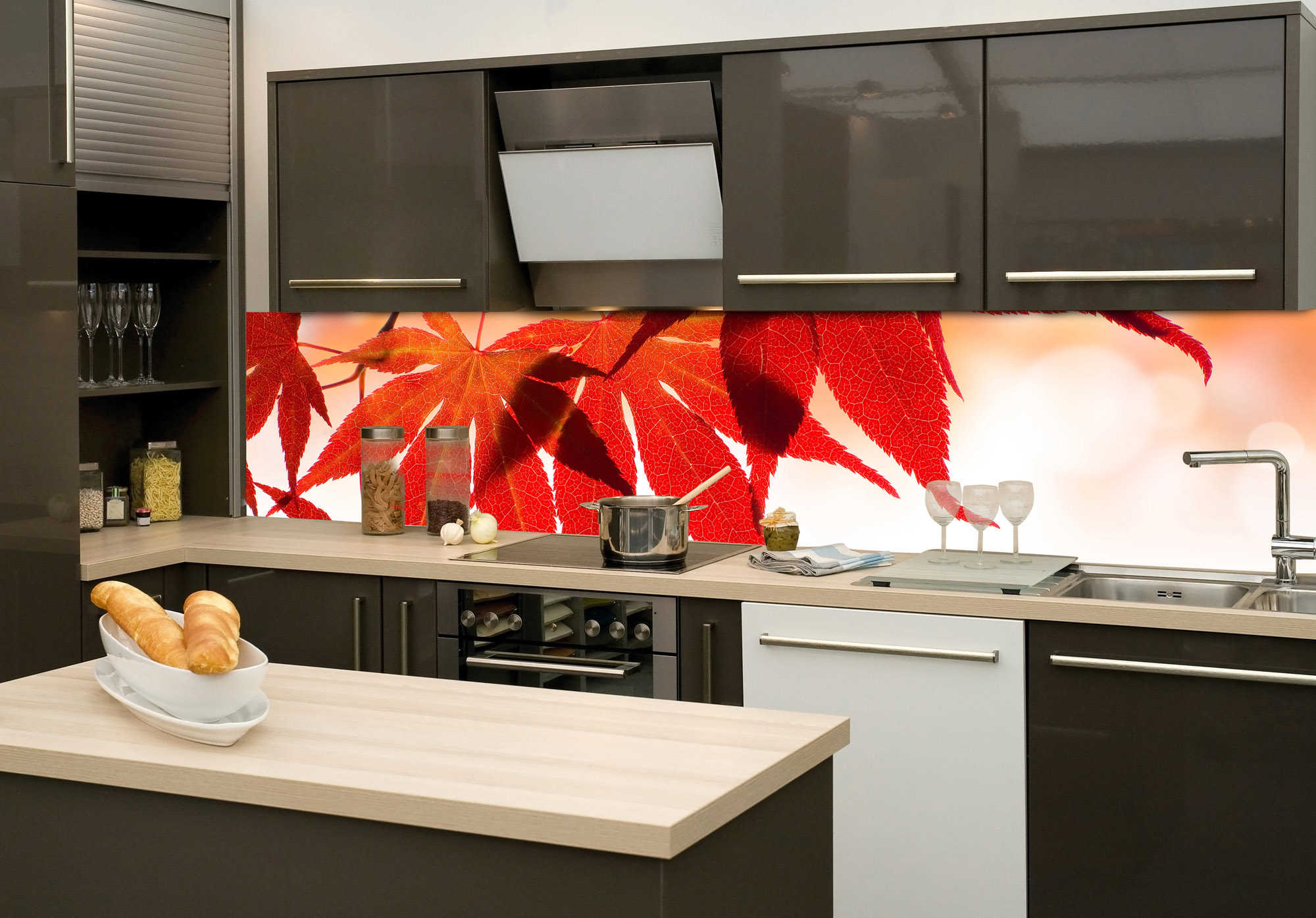 KI-260-008 Fototapet autoadeziv pentru bucătărie – Frunze roșii 260 x 60 cm