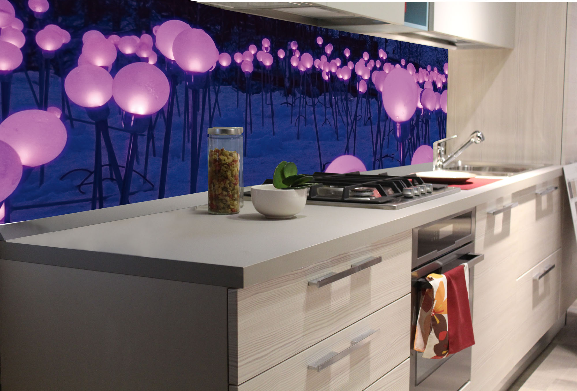 KI-180-191 Fototapet autoadeziv pentru bucătărie – Iluminare violetă a grădinii 180 x 60 cm