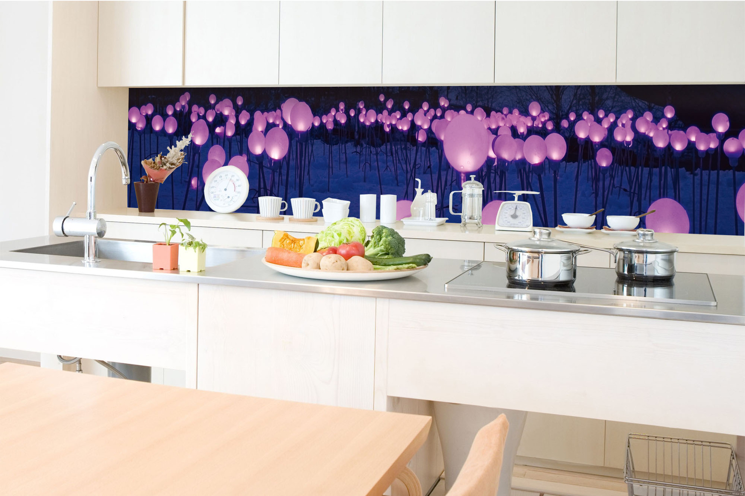 KI-350-191 Fototapet autoadeziv pentru bucătărie – Iluminare violetă a grădinii 350 x 60 cm