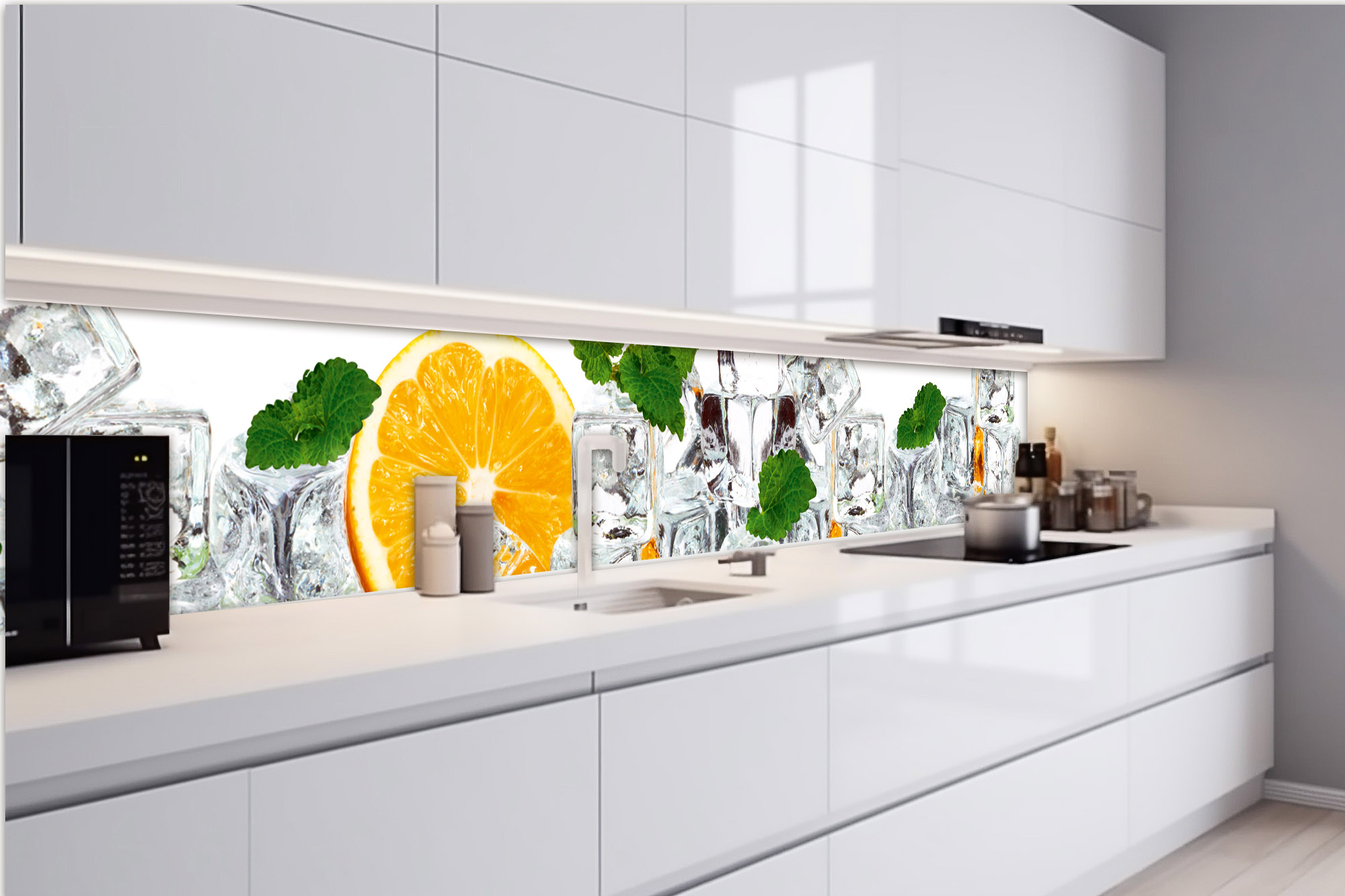 KI-420-023 Fototapet autoadeziv pentru bucătărie – Lămâie și gheață 420 x 60 cm