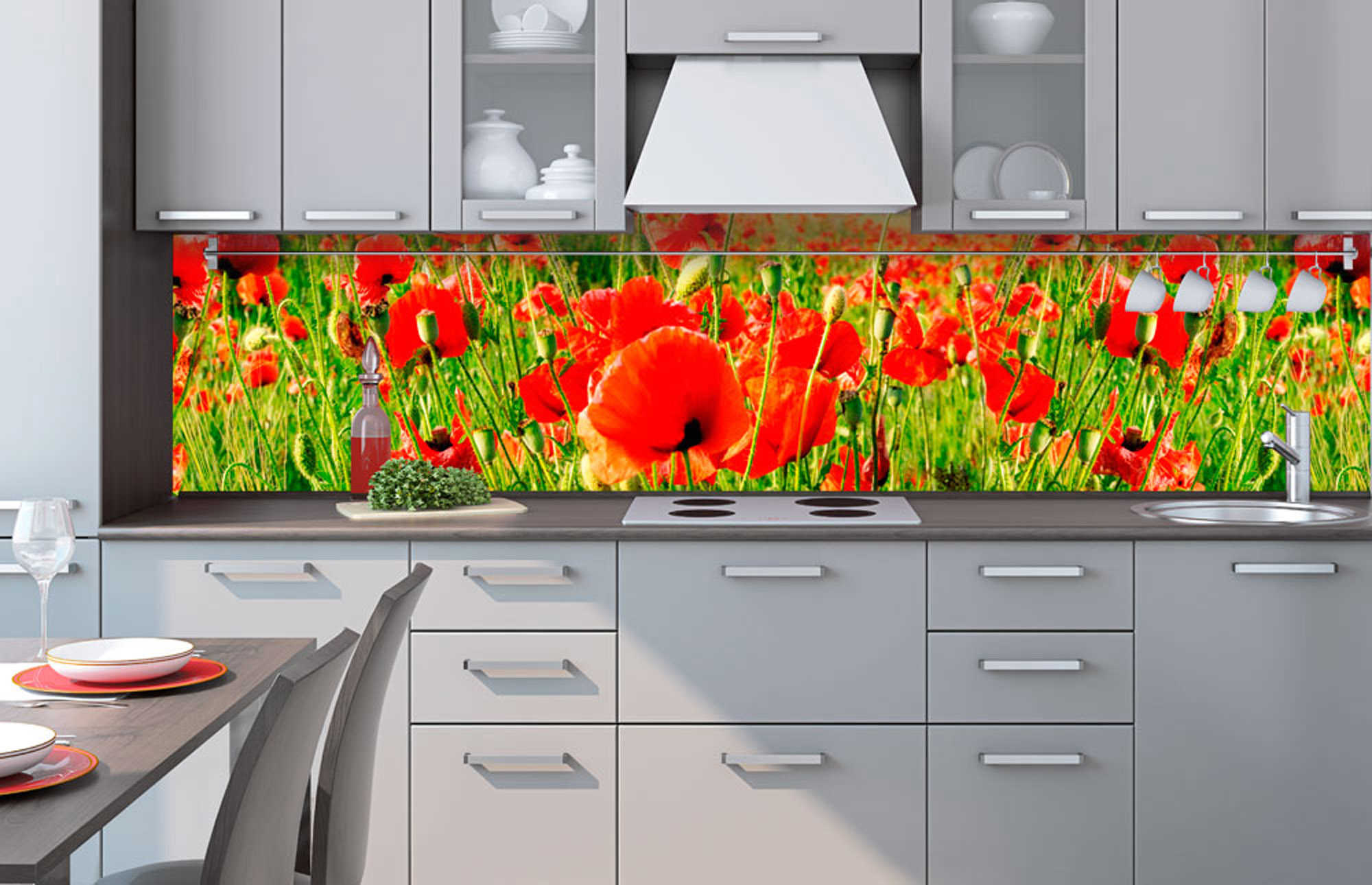 KI-260-028 Fototapet autoadeziv pentru bucătărie – Mac roșii 260 x 60 cm