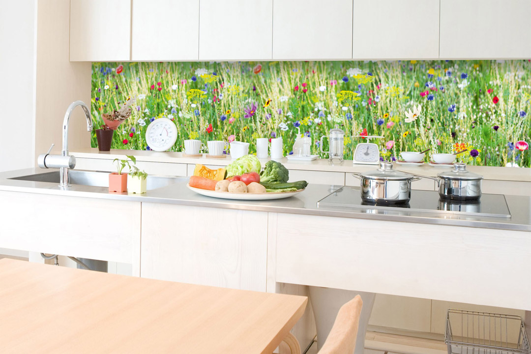 KI-350-172 Fototapet autoadeziv pentru bucătărie – Pajiște cu flori 350 x 60 cm