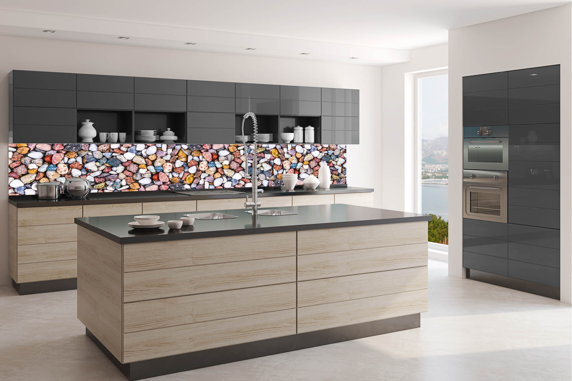 KI-350-247 Fototapet autoadeziv pentru bucătărie – Pietricele colorate 350 x 60 cm
