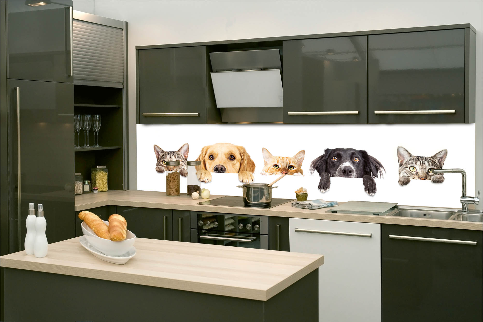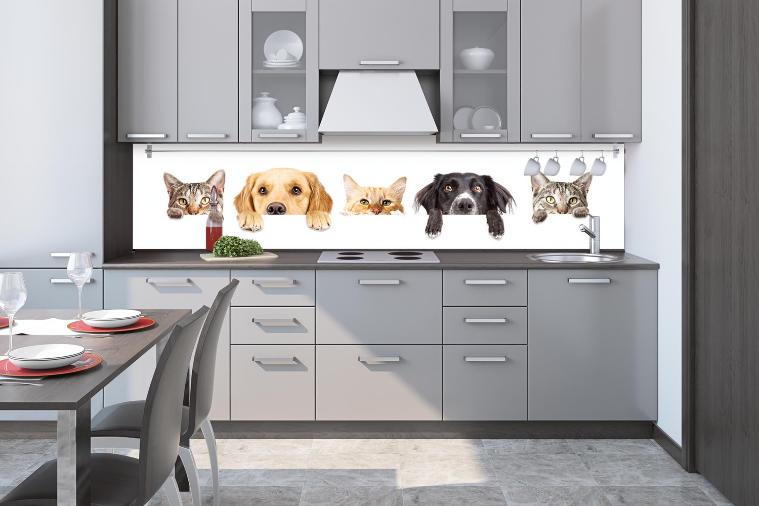 KI-260-175 Fototapet autoadeziv pentru bucătărie – Pisici și câini 260 x 60 cm