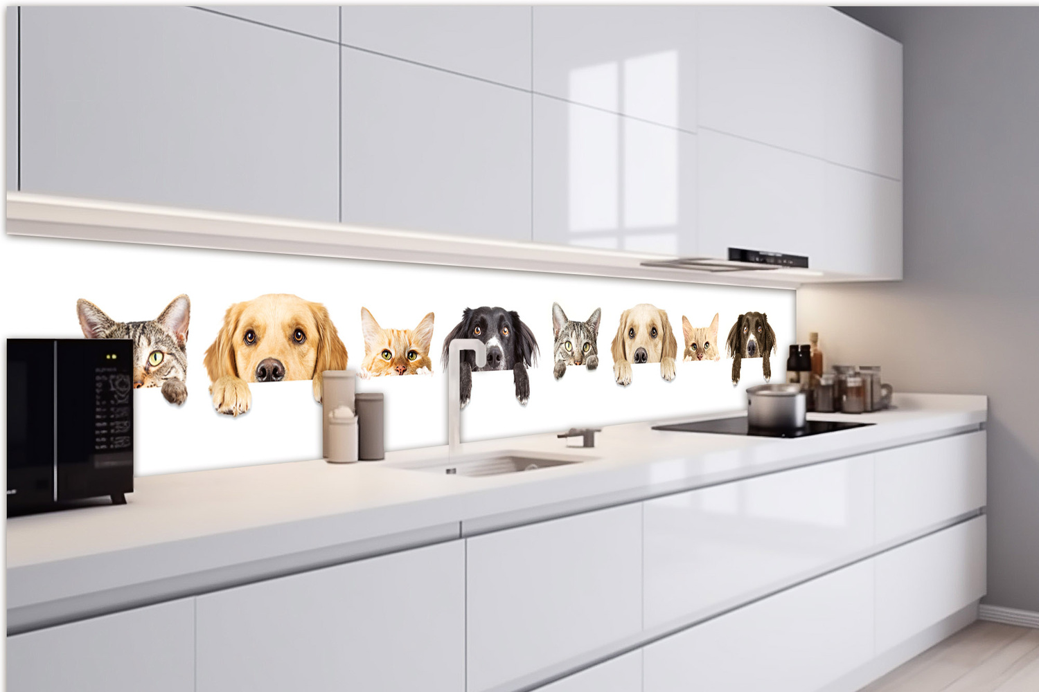 KI-420-175 Fototapet autoadeziv pentru bucătărie – Pisici și câini 420 x 60 cm