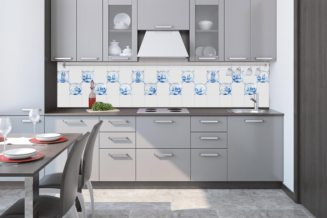 KI-260-167 Fototapet autoadeziv pentru bucătărie – Plăci albastre 260 x 60 cm