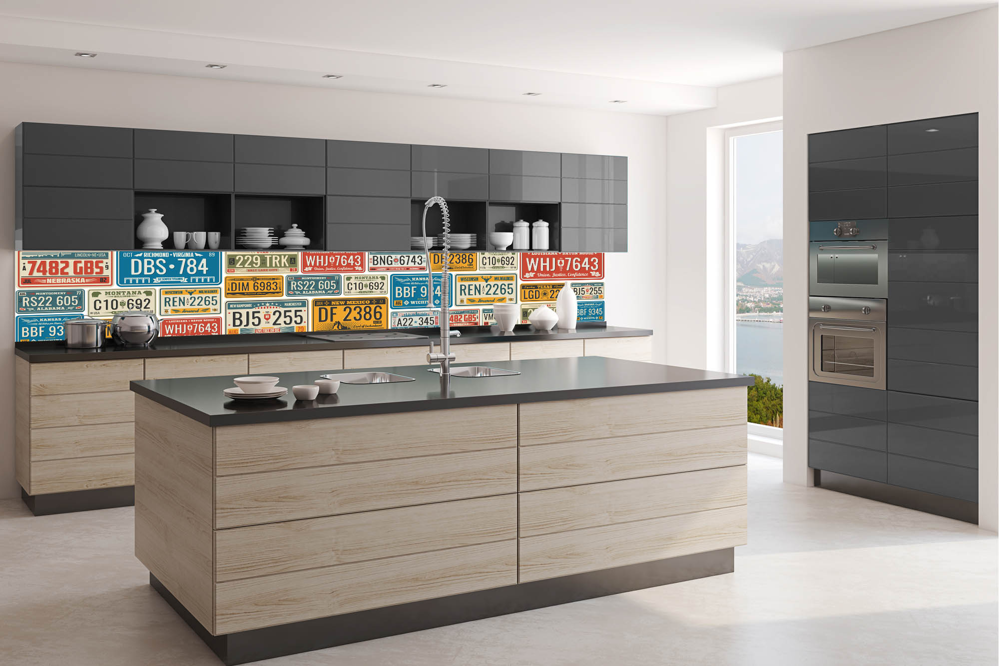 KI-350-227 Fototapet autoadeziv pentru bucătărie – Plăcuță de înmatriculare retro 350 x 60 cm