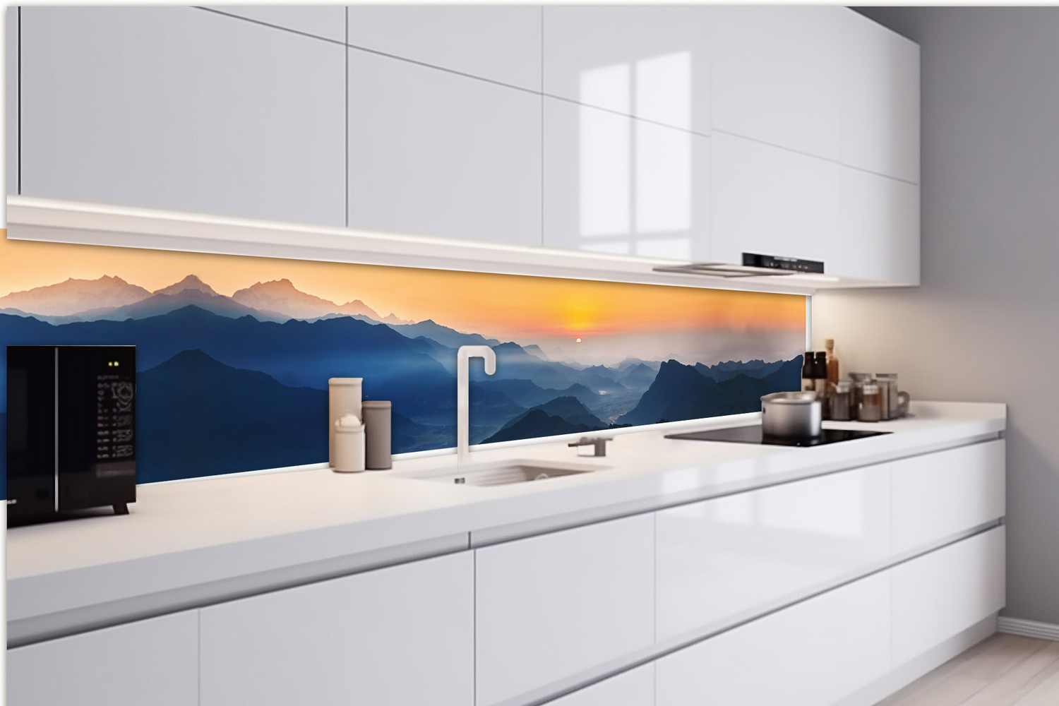 KI-420-202 Fototapet autoadeziv pentru bucătărie – Răsărit de soare în Himalaya 420 x 60 cm