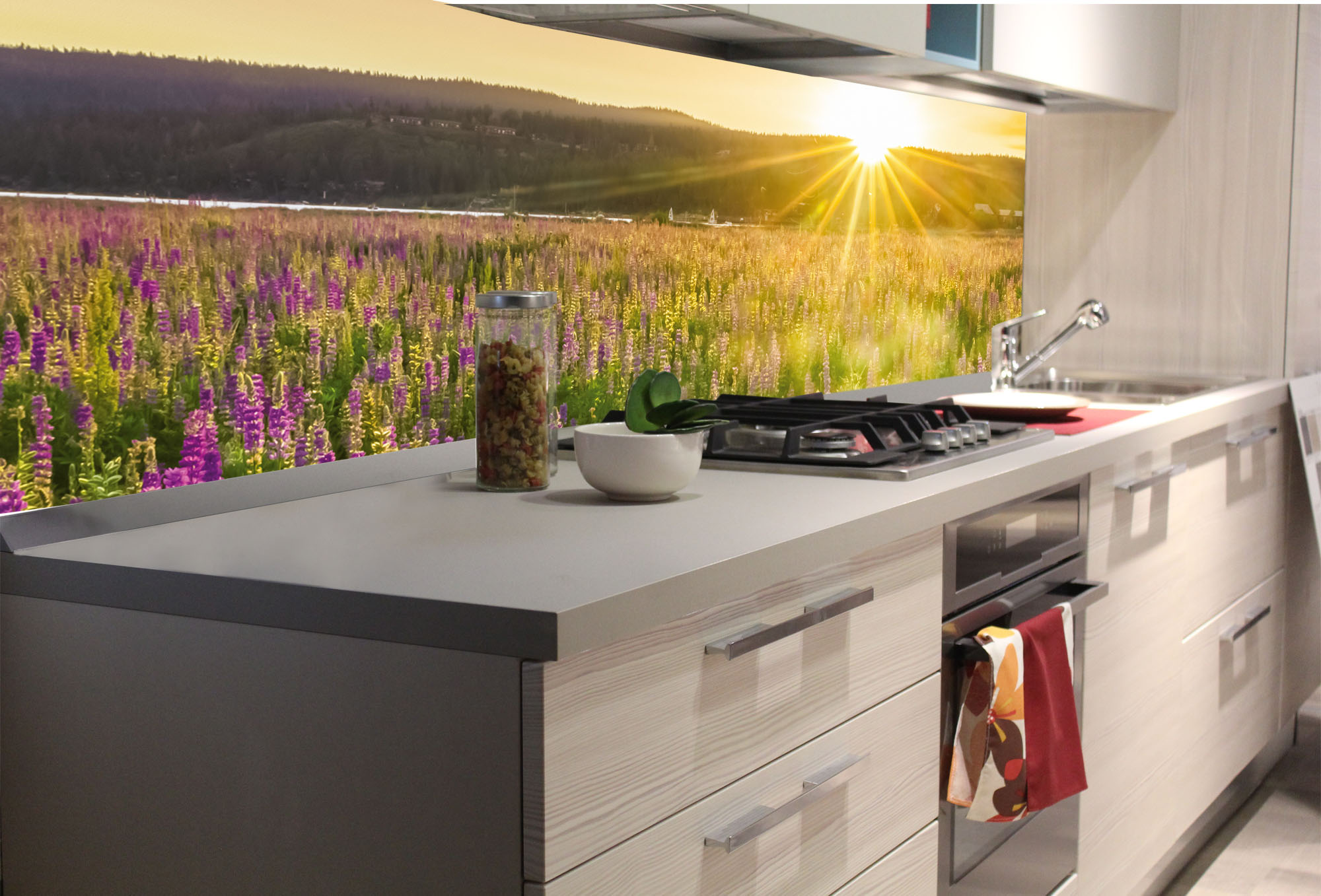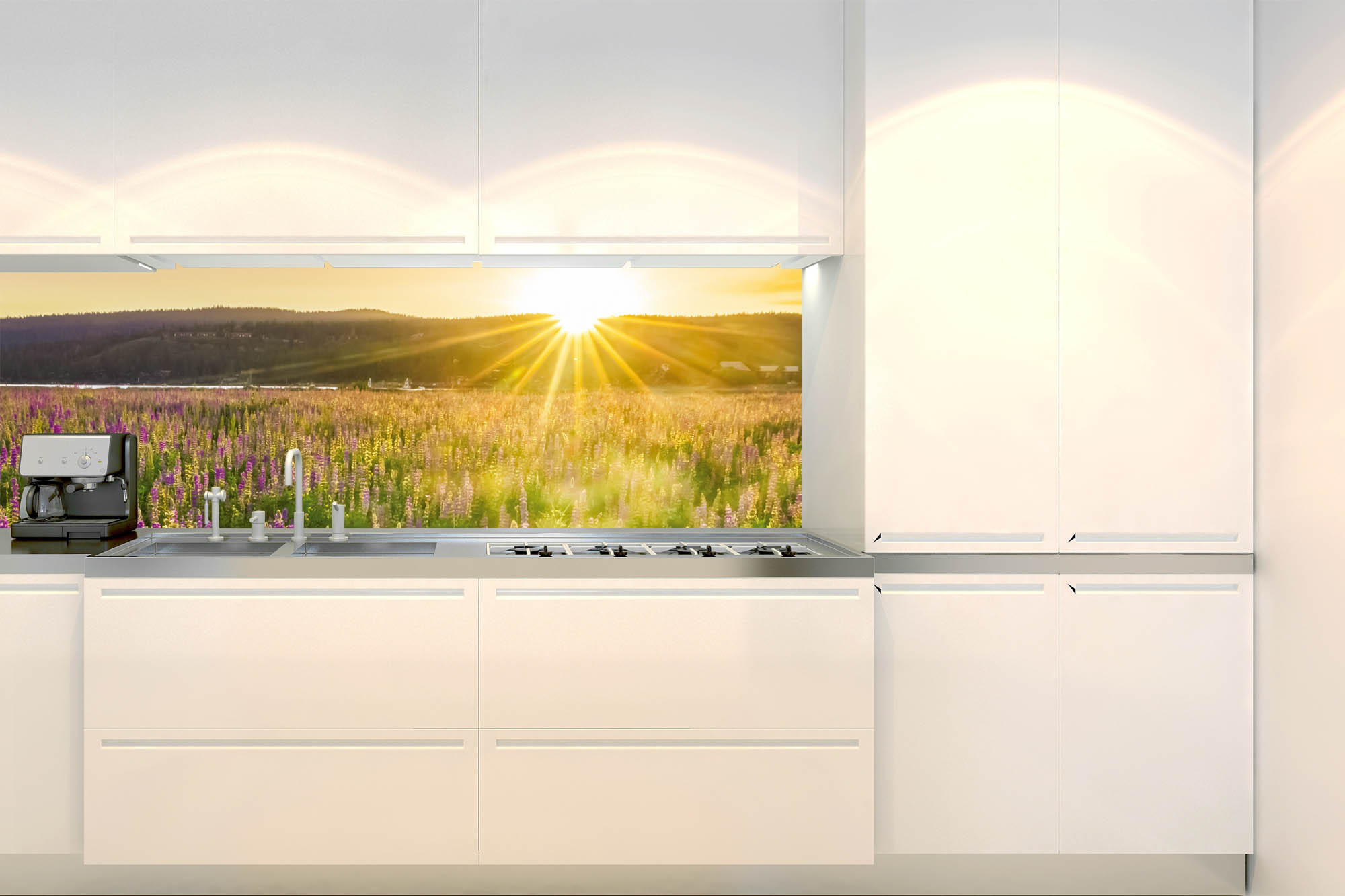 KI-180-201 Fototapet autoadeziv pentru bucătărie – Raze de soare peste pajiște 180 x 60 cm