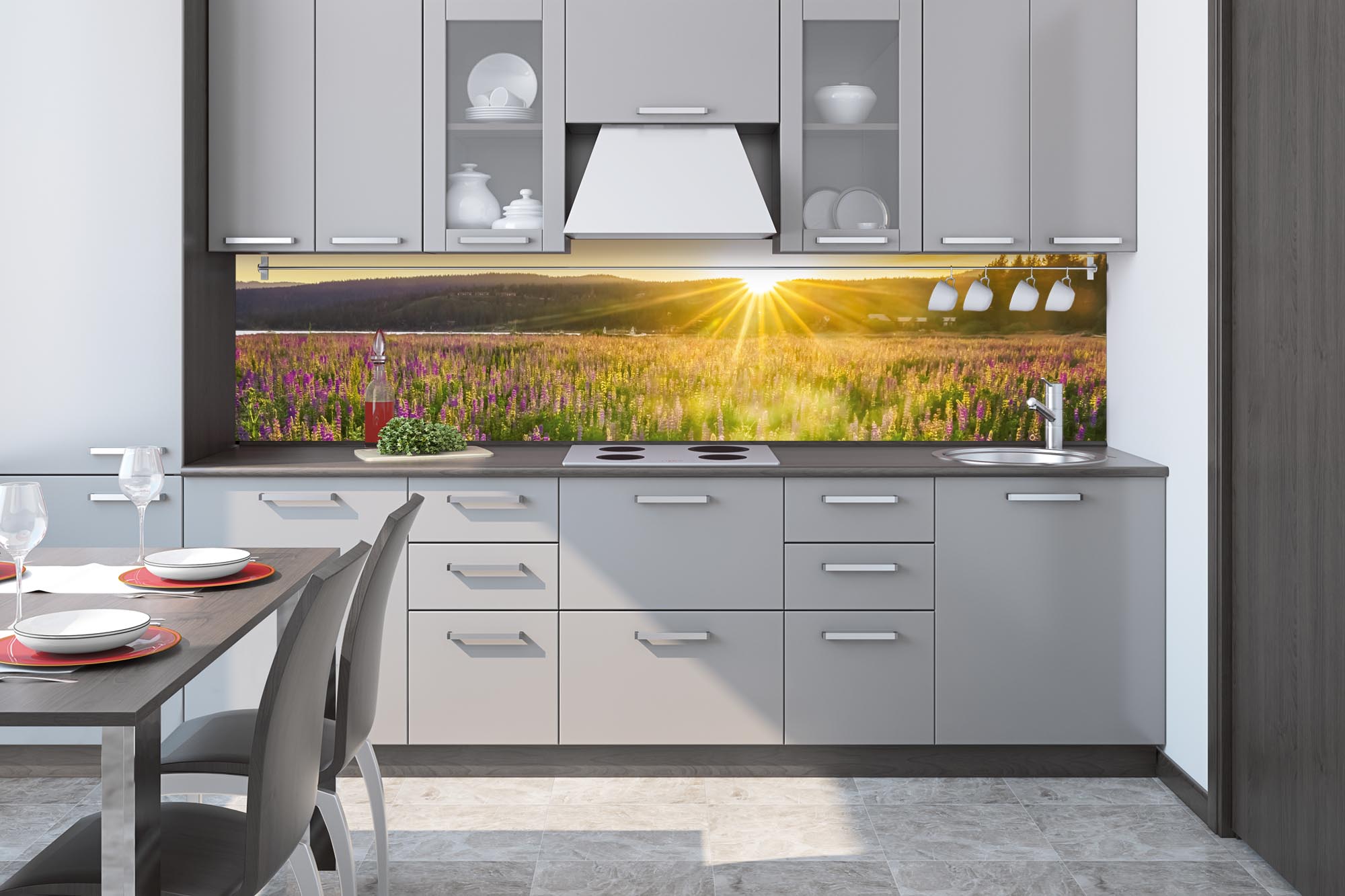 KI-260-201 Fototapet autoadeziv pentru bucătărie – Raze de soare peste pajiște 260 x 60 cm