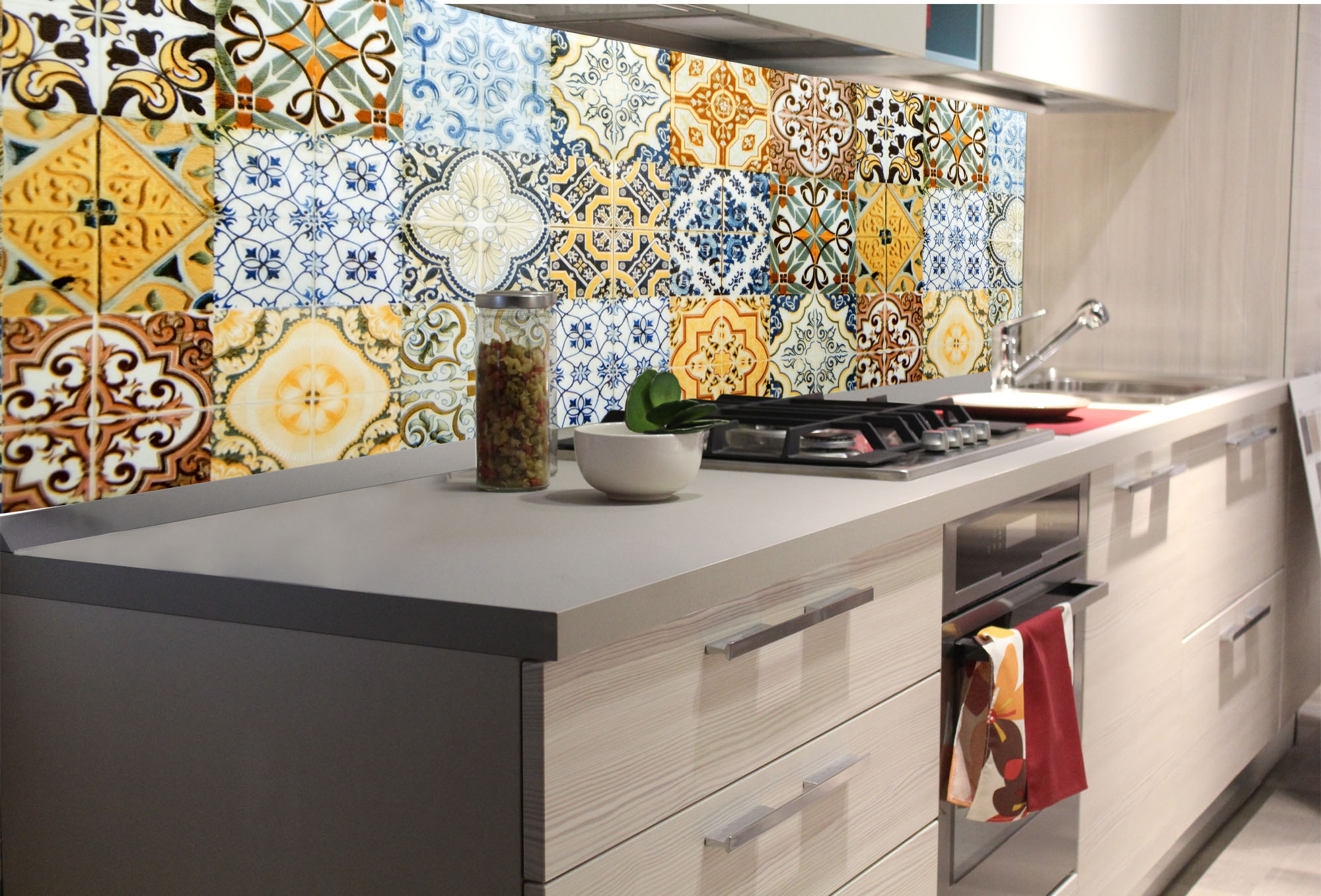 KI-180-243 Fototapet autoadeziv pentru bucătărie – Tapet de bucătărie - Plăci colorate vintage 180 x 60 cm
