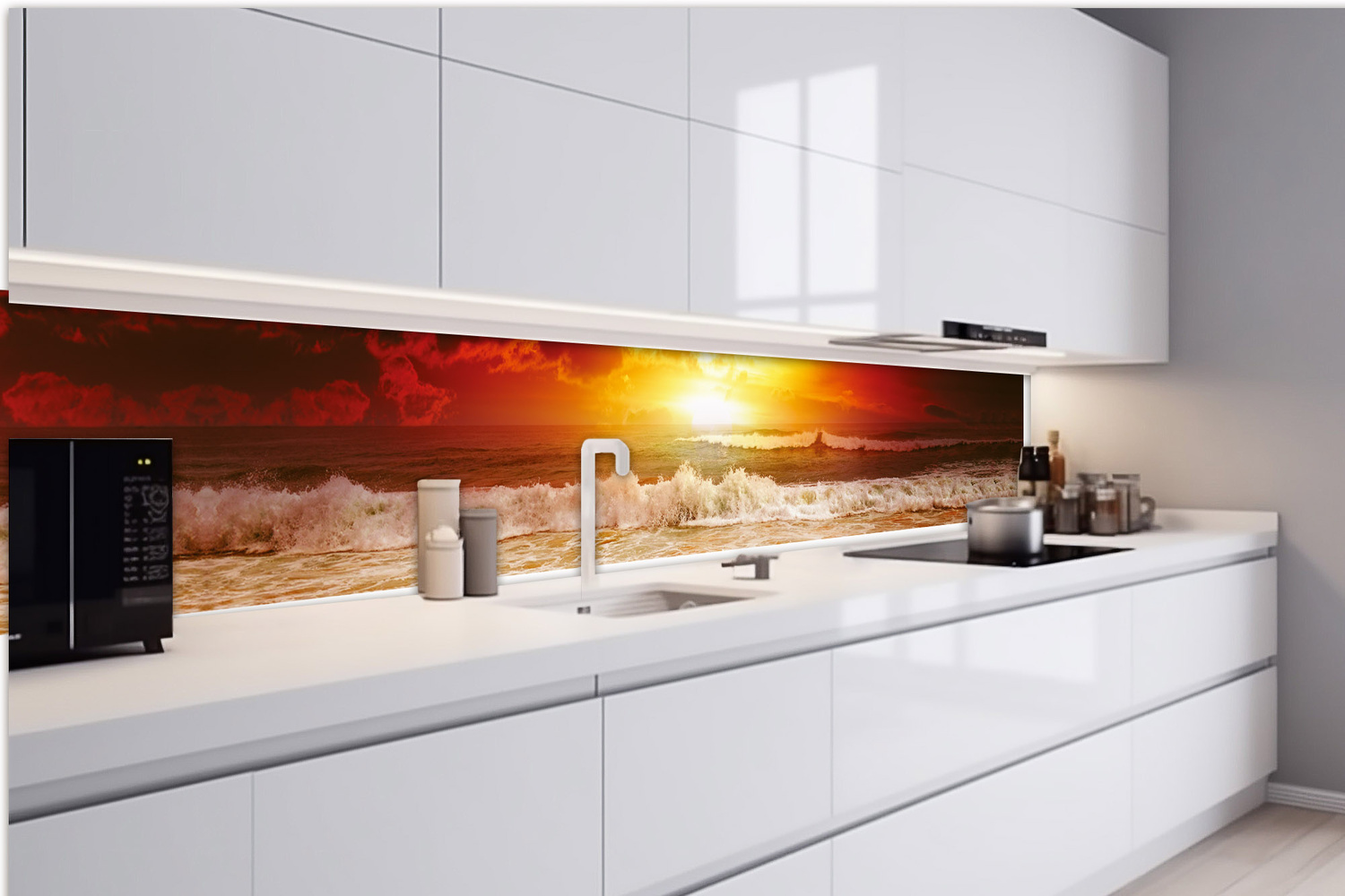 KI-420-204 Fototapet autoadeziv pentru bucătărie – Valuri în apusul soarelui 420 x 60 cm