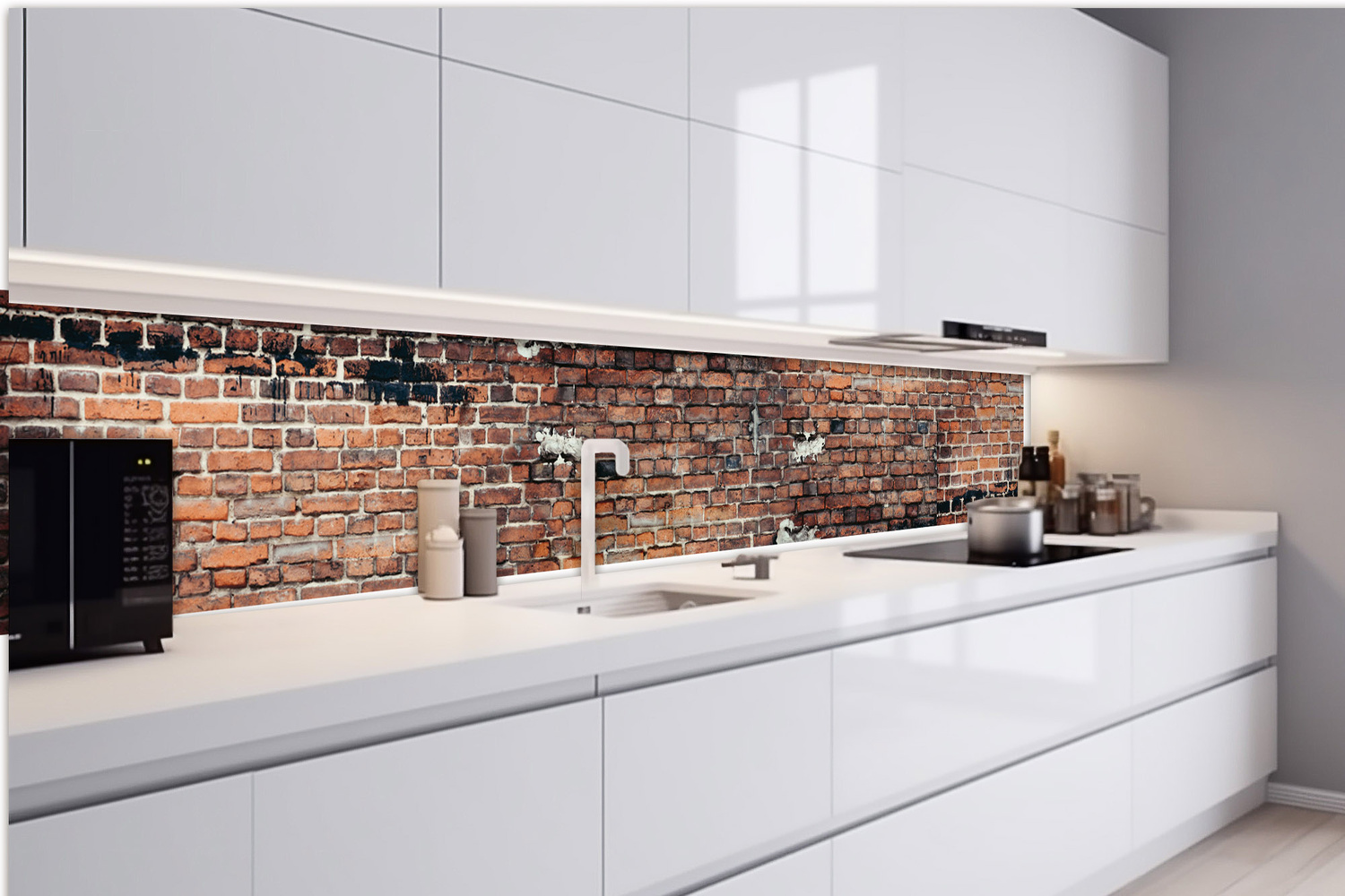 KI-420-305 Fototapet autoadeziv pentru bucătărie – Zidet crăpat de cărămidă 420 x 60 cm