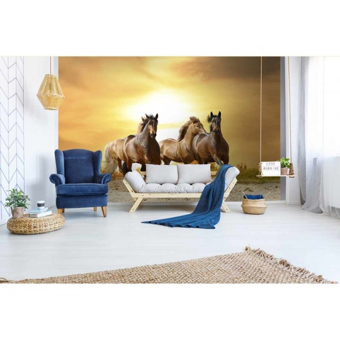 MS-5-0227 Fototapetă vlies pentru perete Cai la apus - 375 x 250 cm