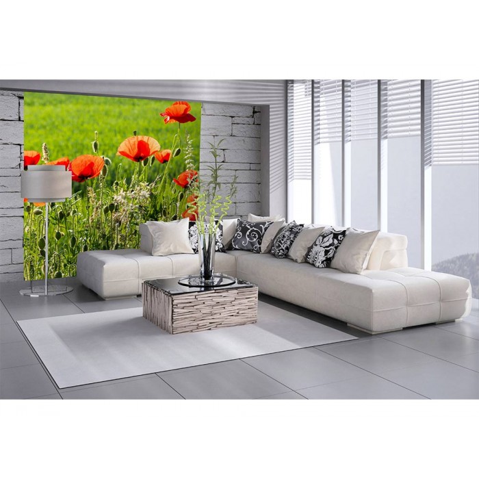 MS-3-0092 Fototapetă vlies pentru perete Câmp de maci - 225 x 250 cm